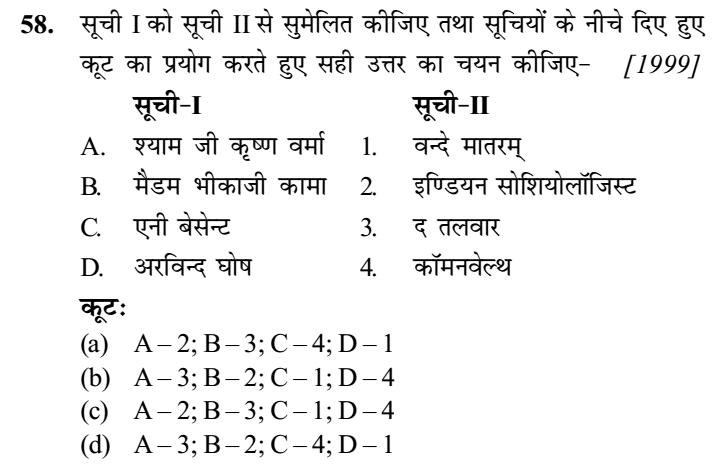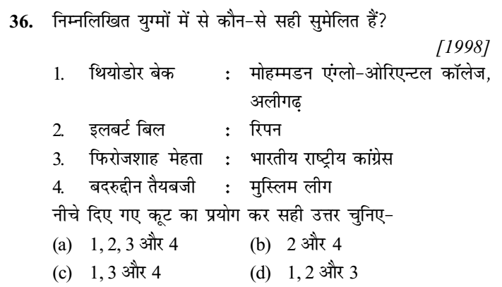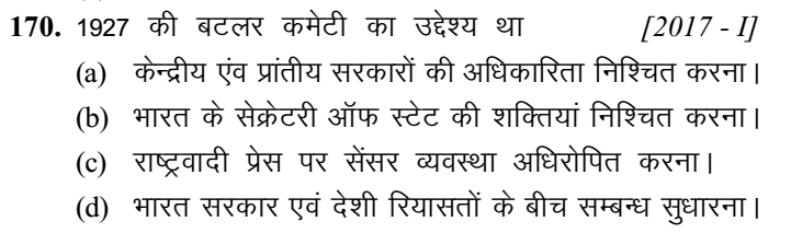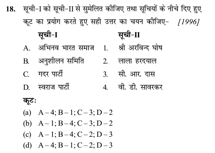 1. कांग्रेस दल की उग्र शाखा ने, जिनके एक प्रमुख नेता जवाहरलाल . नेहरू थे, इण्डिपेन्डेन्स फॉर इण्डिया लीग’ की स्थापना की थी। वह लीग किसक विरोध में स्थापित हुई थी ? [1995]