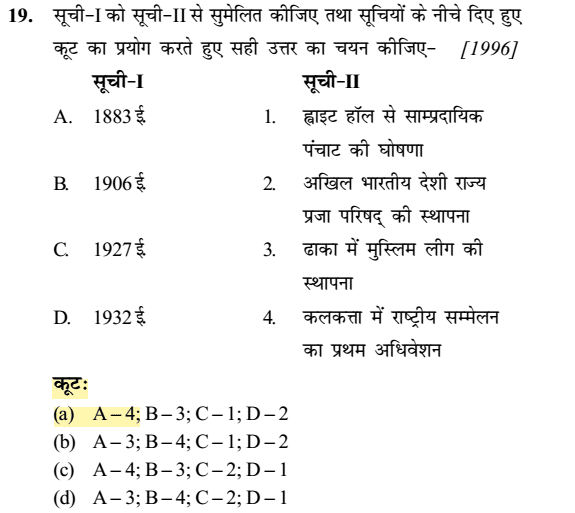1. निम्नलिखित घटनाओं का सही कालक्रम क्या हैं ? (1995)