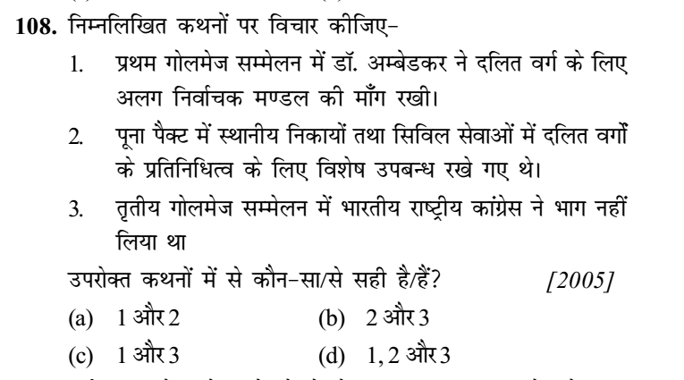 2.   1930-32  की अवधि में भारत और ब्रिटेन के राजनेताओं की लन्दन में हई बैठकों का प्राय: प्रथम, द्वितीय और तृतीय गोलमेज सम्मेलन के रूप में उल्लेख किया जाता है। उनका उसी रूप में उल्लेख गलत होगा, क्योंकि- (1996)