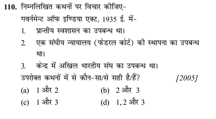 (d) इस सन्दर्भ में उपुर्यक्त (a), (b) तथा (c) कथनों में से कोई भी सही नहीं है।