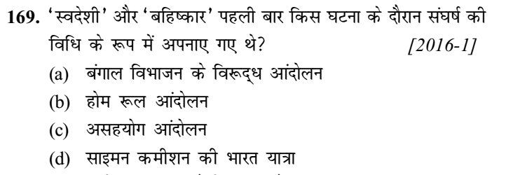 1. भारतीय राष्ट्रीय कांग्रेस के, वर्ष 1906 में विख्यात कलकत्ता अधिवेशन में चार संकल्प पारित किए गए थे। सूरत में 1907 ई. में हुए कांग्रेस के अगले अधिवेशन में इन चारों संकल्पों को स्वीकार करने अथवा उन्हें अस्वीकृत करने के प्रश्न पर कांग्रेस में विभाजन हो गया था। निम्नलिखित में से कौन-सा एक संकल्प इन चारों संकल्पों में नहीं था? [2010]