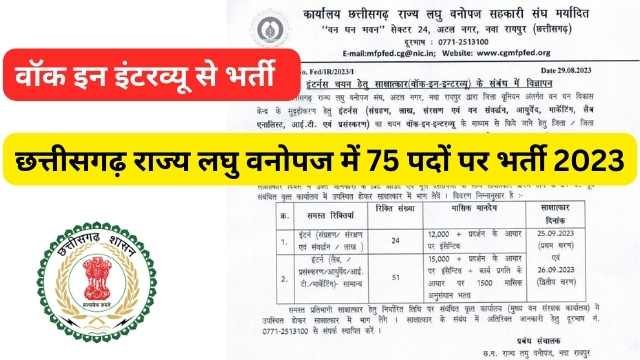 छत्तीसगढ़ राज्य लघु वनोपज वॉक इन इंटरव्यू हेतु सीधी भर्ती 2023