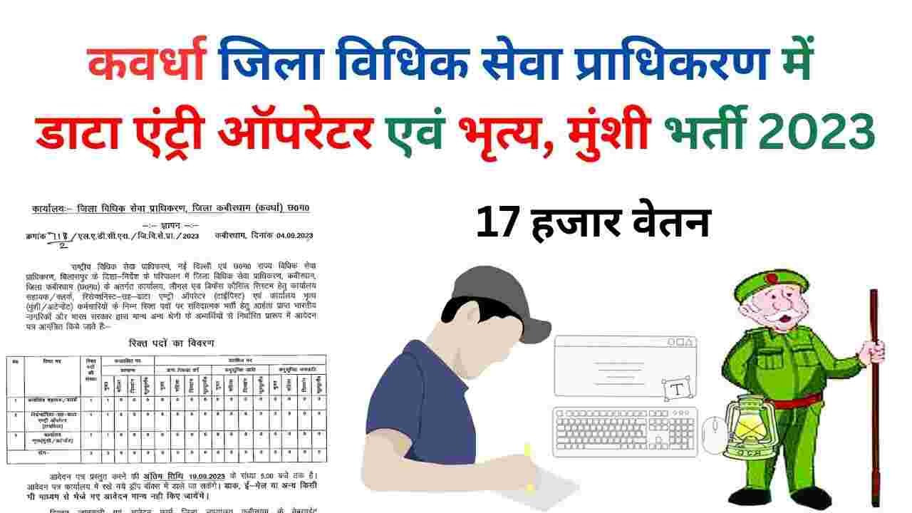 जिला कवर्धा में विभिन्न पदों की भर्ती नौकरी 2023 : जिला विधिक सेवा प्राधिकरण में क्लर्क, डाटा एंट्री आपरेटर, मुंशी भर्ती पदों के लिए मंगाए गए हैं आवेदन, देखें पूरी डिटेल new fresher job requirements kawardha.gov.in recruitment 2023