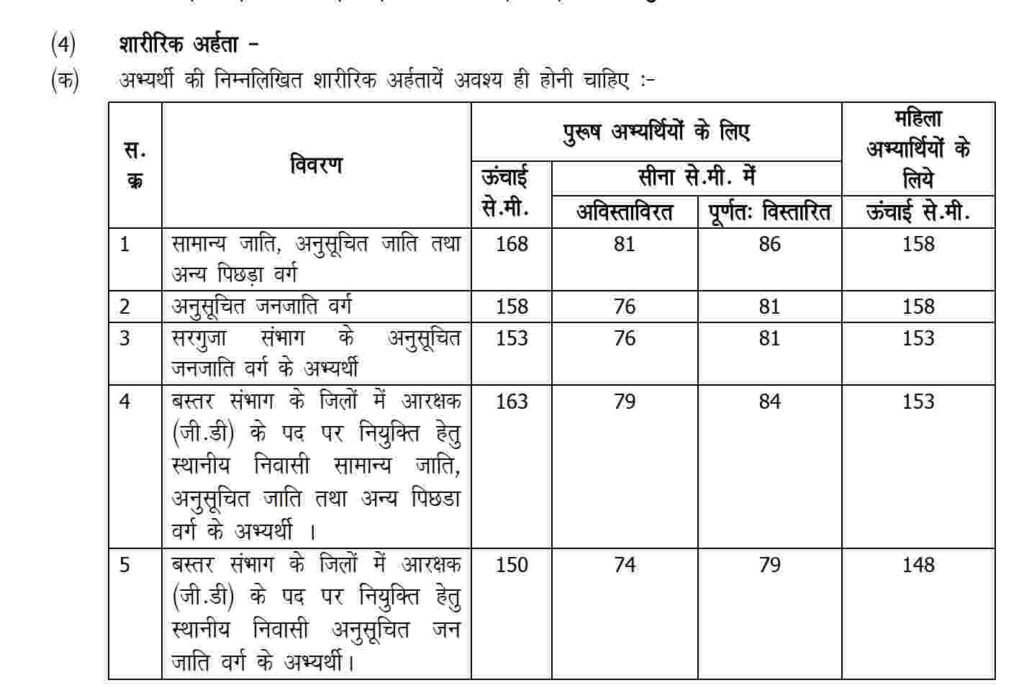 शारीरिक अर्हता – CG Police Physical Test 2023 Height for Male (पुरुष ऊंचाई)