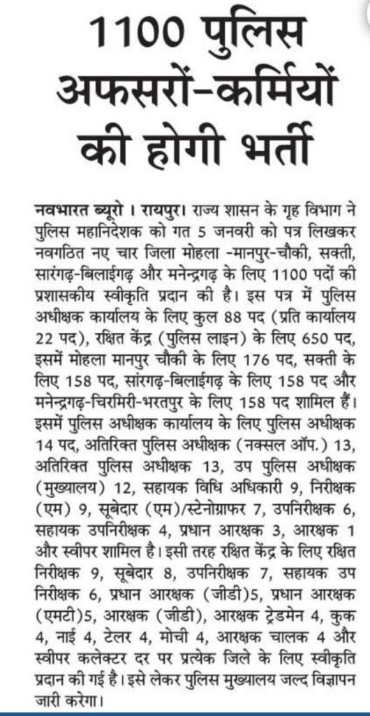 | Job Category :- | छत्तीसगढ़ पुलिस भर्ती |
