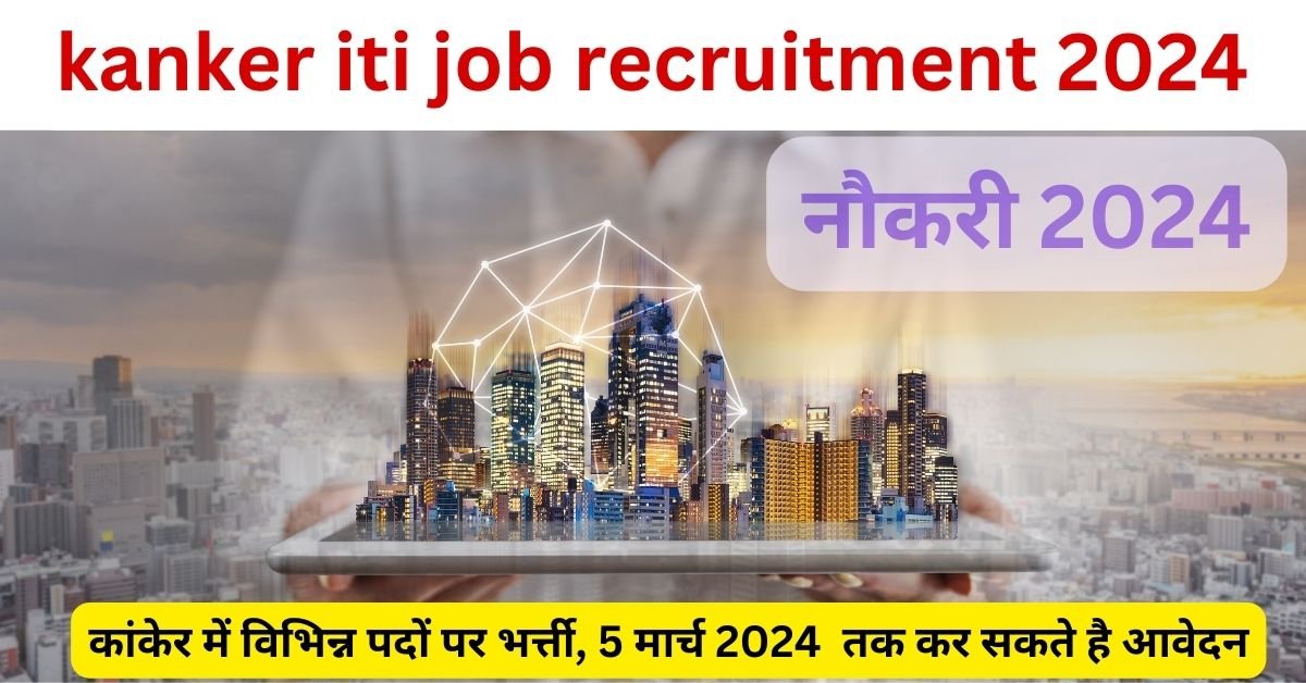 उ०ब० कांकेर (छत्तीसगढ) — प्राचार्य एवं नोडल संस्था महिला औद्योगिक प्रशिक्षण संस्था, कांकेर के अधीनस्थ संचालित औद्योगिक प्रशिक्षण संस्थाओं में सत्र 2023-24 एवं 2023-25 में प्रशिक्षण कार्य संपन्न कराने हेतु व्यवसाय विद्युतकार, सीविंग टेक्नालॉजी, ड्रेस मेकिंग, वर्कशाप केल्कुलेशन साइंस एंड इंजीनियरिंग ड्राईंग, स्टेनो हिन्दी एवं कोपा के स्वीकृत प्रशिक्षण अधिकारियों के रिक्त पदों के विरूद्ध मेहमान प्रवक्ता (गेस्ट लेक्चरर) के लिये आवेदन पत्र निर्धारित प्रारूप में दिनांक 05.03.2024 को सायं 5:00 बजे तक कार्यालय प्राचार्य, महिला औद्योगिक प्रशिक्षण संस्था, कांकेर जिला – उत्तर बस्तर कांकेर, छत्तीसगढ़ पिन – 494334 के नाम स्पीड पोस्ट / रजिस्टर डाक / सामान्य डाक के माध्यम से अथवा स्वयं उपस्थित होकर आवेदन कर सकते हैं।