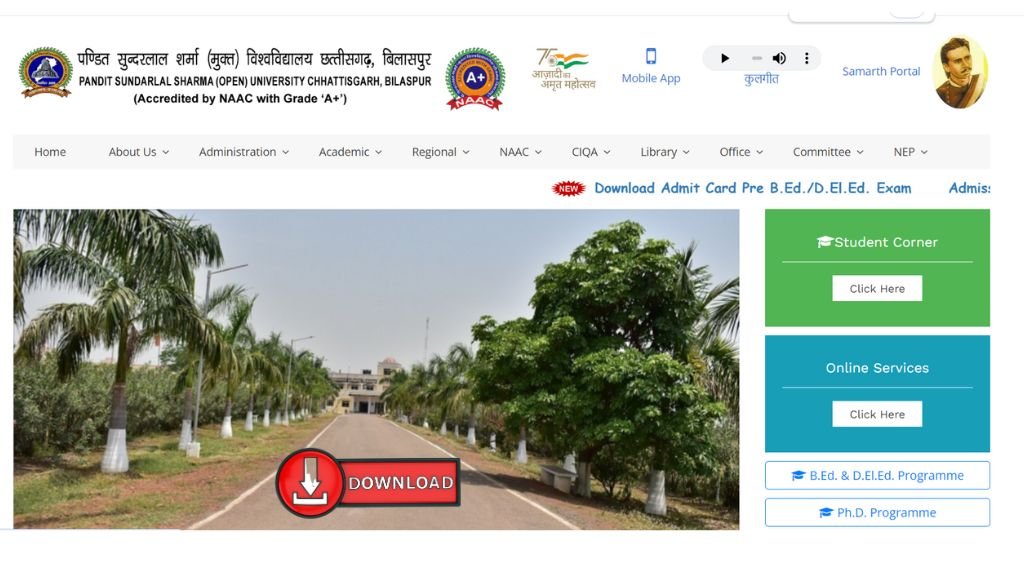 पंडित सुंदरलाल शर्मा विवि बीएड/डीएलएड के प्रवेश पत्र जारी Pt. Sundarlal Sharma (Open) University Chhattisgarh, Bilaspur Bed Deled Admit Card 2024