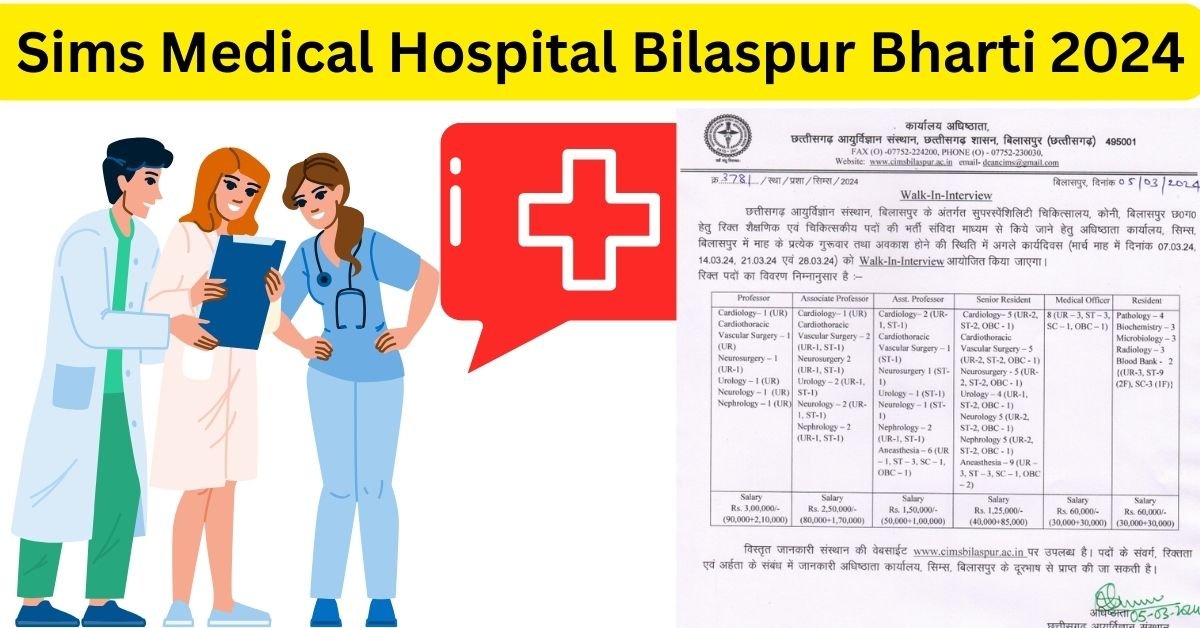 Sims Medical Hospital Bilaspur Bharti 2024 छत्तीसगढ़ बिलासपुर सिम्स हॉस्पिटल में बंपर भर्तिया